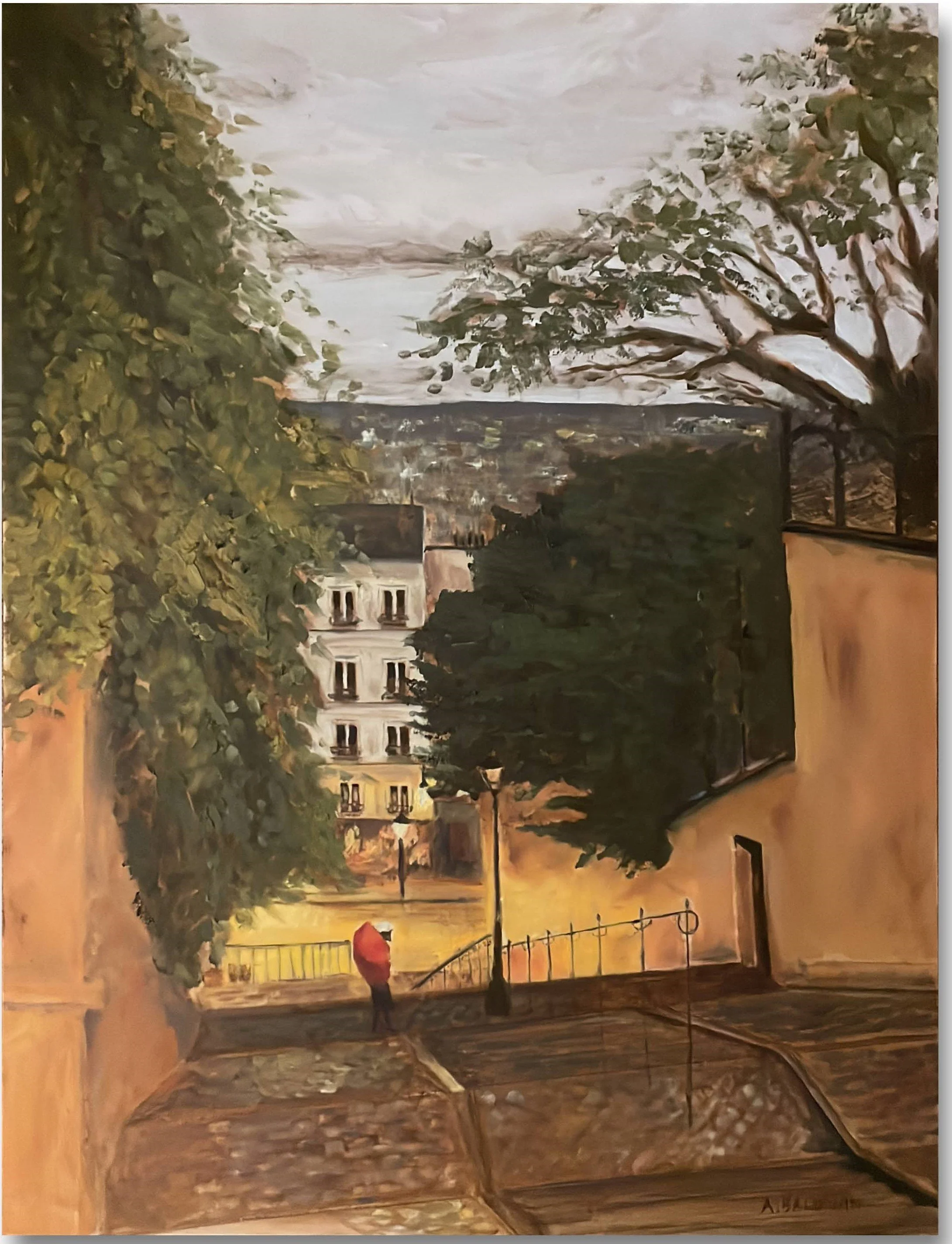 Red Umbrella in Montmartre: 12x16 oil on panel (SOLD)